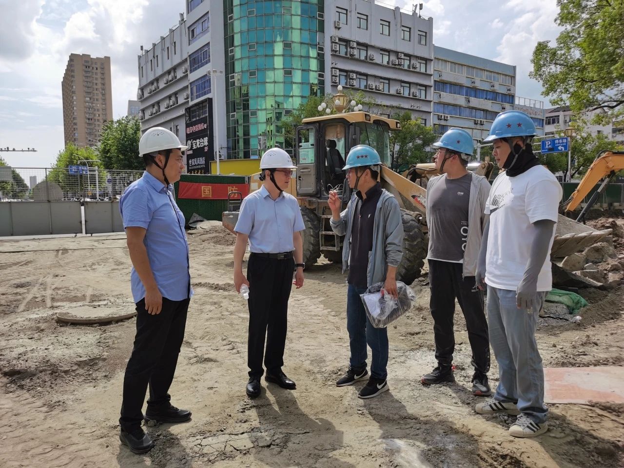 2025年7月22日15時許,如皋市氣溫突破37℃。高溫炙烤,難阻工程建設(shè)步伐。我公司承監(jiān)的如皋市老舊排水管網(wǎng)改造監(jiān)理項目現(xiàn)場,工作人員正揮汗如雨,緊張有序的忙碌著。此時,東南大學(xué)資產(chǎn)經(jīng)營有限公司董事長邱衛(wèi)東在公司總經(jīng)理尤鋆、副總經(jīng)理范越宇陪同下來到施工現(xiàn)場,慰問高溫下堅守監(jiān)理崗位的一線監(jiān)理員工,送去防暑降溫慰問品,并檢查現(xiàn)場高溫安全生產(chǎn)專項工作落實情況。